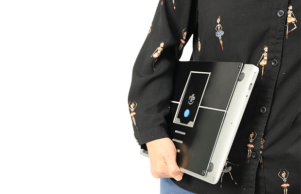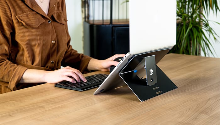 Du fastgør Riser Attachable nemt og én gang for alle på bagsiden af din bærbare computer ved hjælp af velcro. Se vores vejledning for instruktioner.