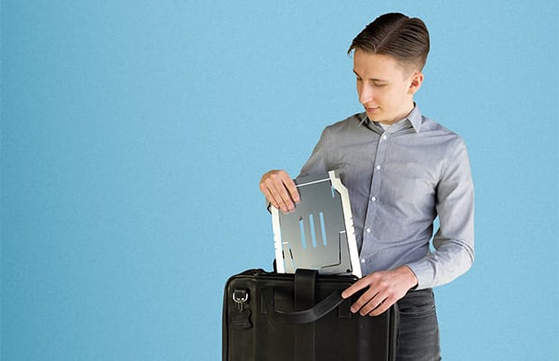 Denne laptopstativ er lavet af Hylite®: det tyndeste aluminiumskompositmateriale i verden. Det gør stativet meget let. Det vejer kun 450 gram, men har en bæreevne på hele 5 kg. Egnet til alle tablets og laptops fra 10 til 22 tommer. Denne ultratynde laptop- og tabletholder er nem at have med i din laptoptaske. Ideel til at kunne arbejde sundt overalt!