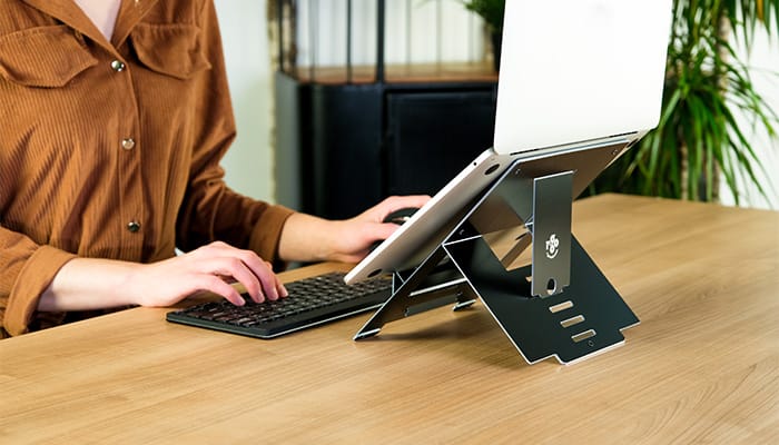 Riser Flexible laptopstativet fås i sort og sølv.